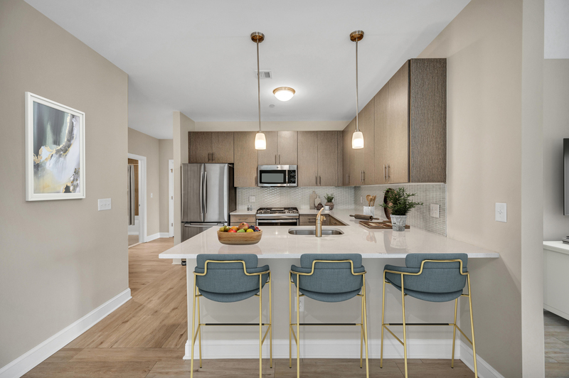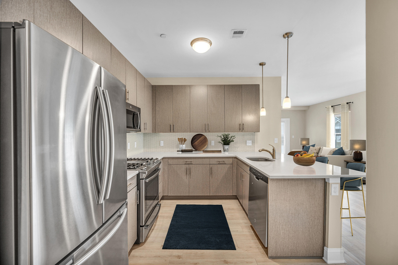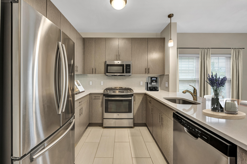 Inside your new home, you’ll enjoy fully equipped kitchens with sleek stainless steel appliances, quartz countertops, kitchen islands, and soft-close cabinets and drawers. Luxuriate in ceramic-tiled kitchens and baths, plush carpeted bedrooms, spacious closets, and the convenience of in-suite washers and dryers. Select apartments even offer private entry through a patio, while townhomes feature attached garages for added ease. Relax on your private balcony or patio, all while controlling your own central air and heat.