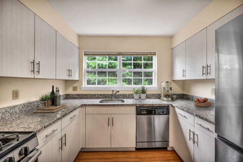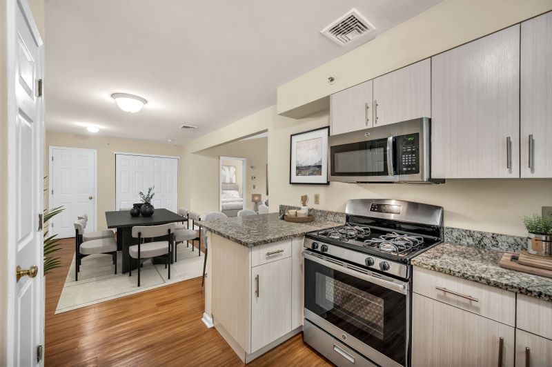 Our spacious one- and two-bedroom residences, ranging from 815 to 1,180 square feet, feature fully equipped kitchens with gas ovens, microwaves, built-in dishwashers, and refrigerators. Many of our apartments boast upgraded features such as granite countertops, stainless steel appliances, and elegant wood laminate flooring. Enjoy the convenience of in-suite washer and dryers, beautifully tiled bathrooms, and the luxury of private patios or balconies, perfect for savoring those tranquil moments outdoors.